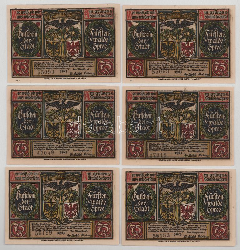 Német Birodalom / Weimari Köztársaság / Fürstenwalde 1921. 75pf (6db, 3xklf) T:AU-XF
