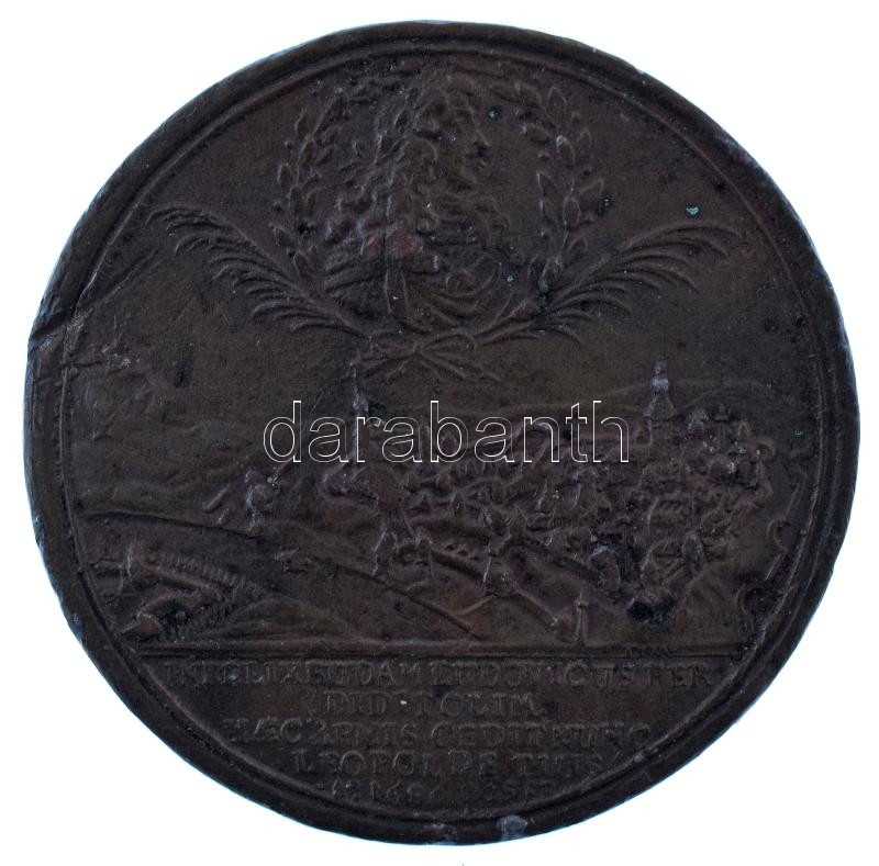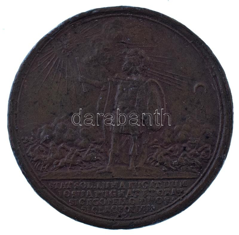 Ausztria DN "Buda visszafoglalása" "IN FELIX BUDAM LUDOVICUS PEP DIDITOLIM HAEC ARMIS CEDIT NVNC / STAT SOL LUNA FUGIT DUM IOSUA PUGNAT ET ORAT SICEGO PELLO DUOS SIC LEOPOLDUS" kétoldalas bronz emlékérem (48mm) T:VF hajlott lemez, ph.