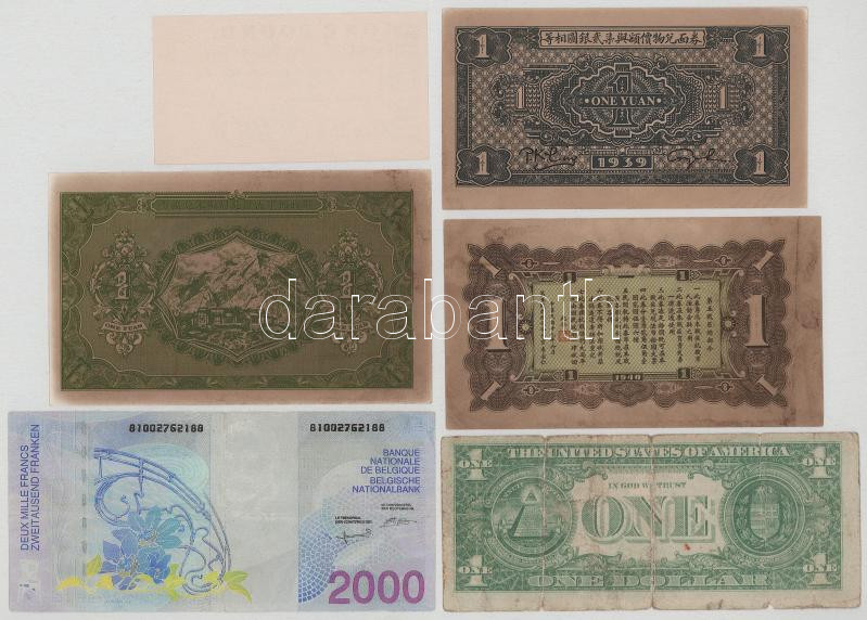 Vegyes, 6db-os kínai, belga, amerikai és ausztrál hamis bankjegy T:vegyes