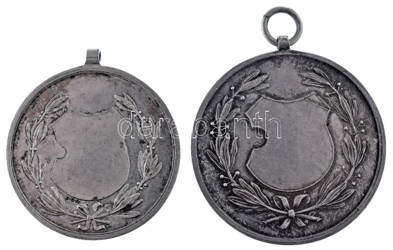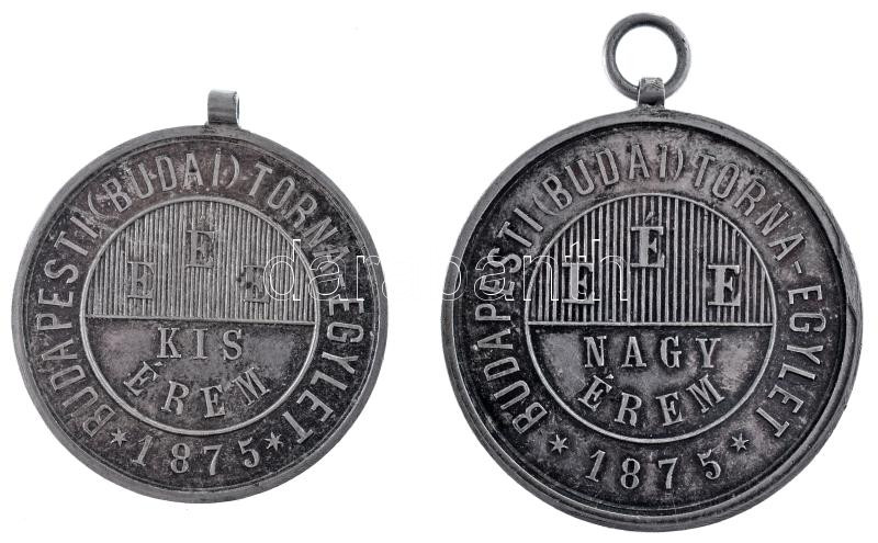 1910 k. "Budapesti (Budai) Torna Egylet 1875 - E.É.E. Kis Érem" kétoldalas, ezüstözött bronz sportérem (31mm) + "Budapesti (Budai) Torna Egylet 1875 - E.É.E. Nagy Érem" kétoldalas, ezüstözött bronz sportérem (35mm) T:AU,XF patina, kopott ezüstözés