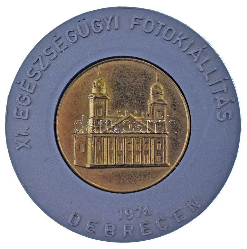 1974. "XI. Egészségügyi Fotókiállítás - 1974 Debrecen" fém lemezérem műanyag keretben (63mm) T:AU