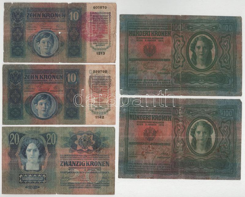 1912-1915. 10K-100K (5xklf) magyar és román felülbélyegzésekkel T:F-G