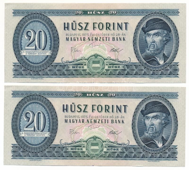 1975. 20Ft (2x) sorszámkövetők "C 368 088194 - C 368 088195" T:XF, egyhajtásosak, hullámos papír