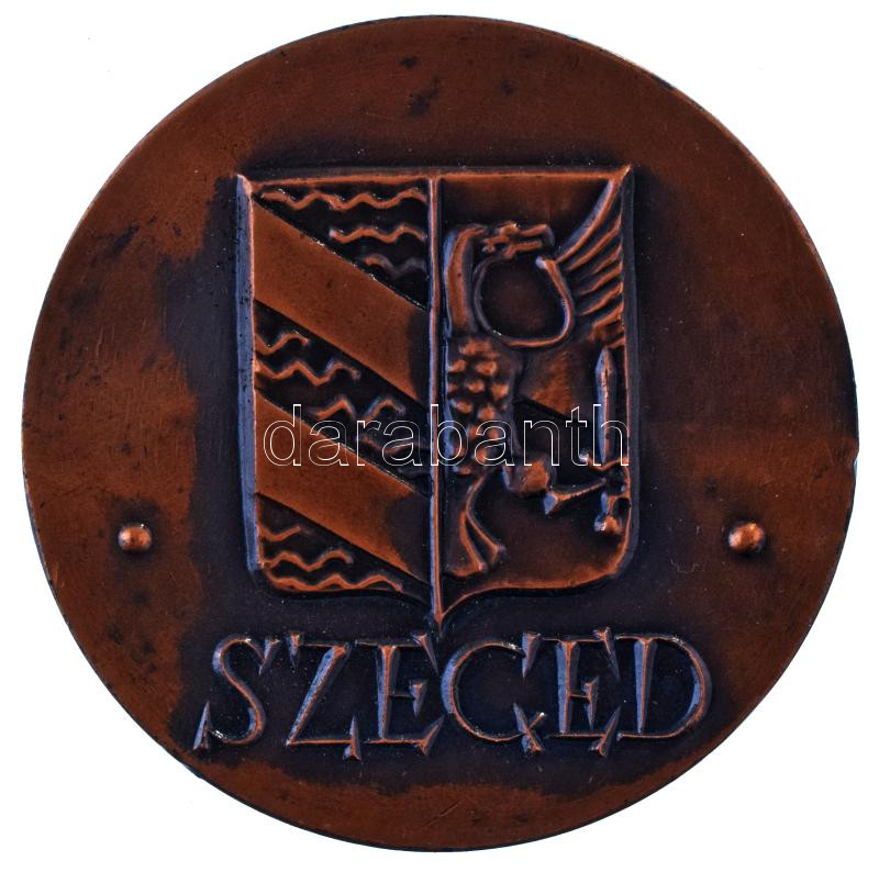 1970-1980 k. Kétoldalas bronz emlékérem, egyik oldalán Szeged város címere, másikon a Belvárosi híd (60mm)