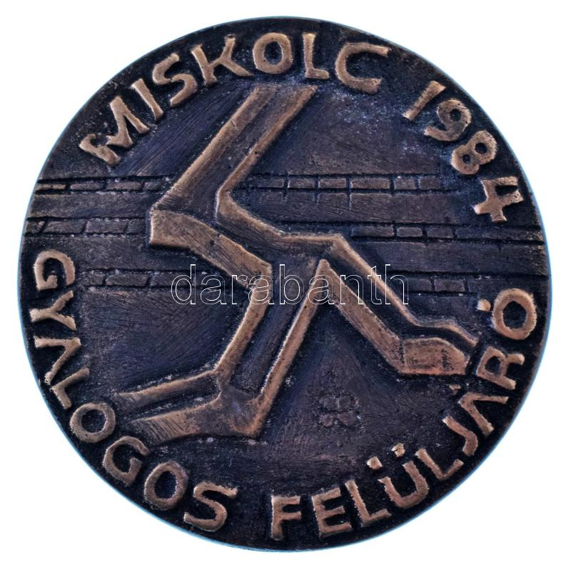 1984. "Miskolc Gyalogos Felüljáró" egyoldalas bronz emlékérem, hátoldalán névre szóló gravírozással "Bartus Ágoston" (59mm) T:AU