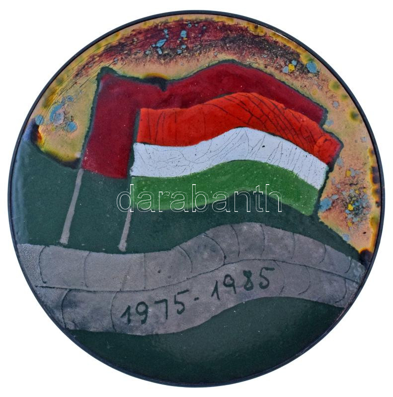 1985. "1975-1985" zománcfestett bronz plakett az ábrázolás alapján feltehetően az Albertirsa-Vinnicja távvezeték 10. évfordulójára (99mm) T:XF