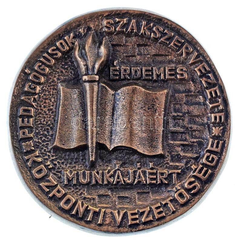 1990. "Pedagógusok Szakszervezete - Központi Vezetősége - Érdemes Munkájáért" öntött bronz emlékérem hátoldalon "Uzsoki Antalnak 1990." rátéttel (86mm) T:AU