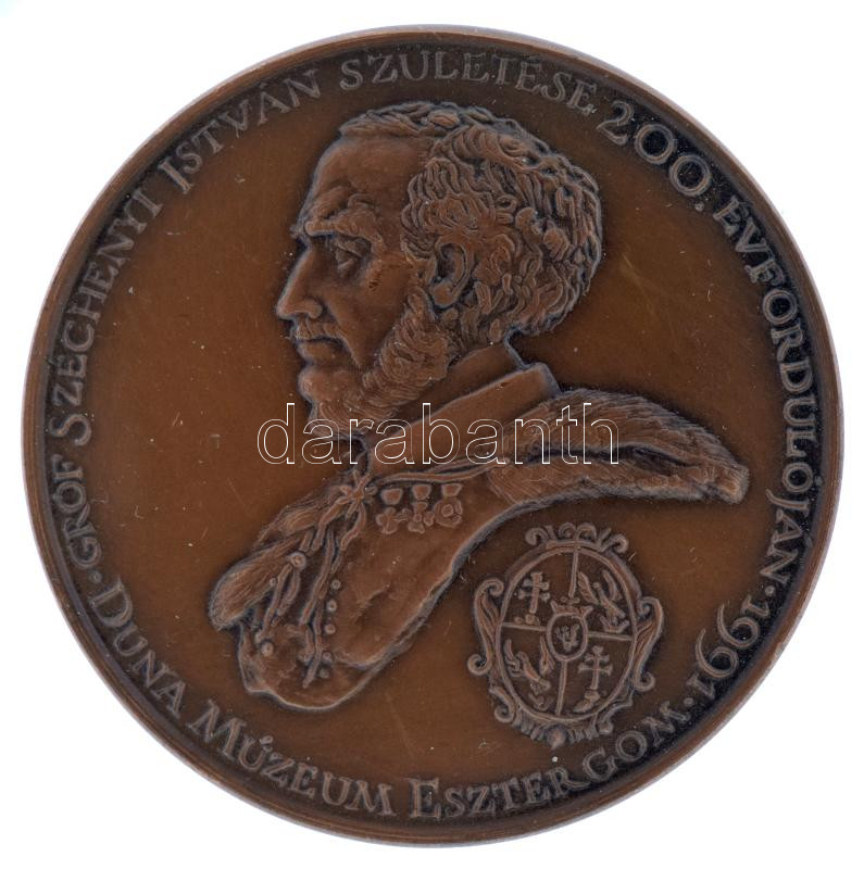 1991. "Gróf Széchenyi István születése 200. évfordulóján 1991 - Duna Múzeum Esztergom / Az első kapavágás a Tisza szabályozásánál Tiszadob 1846 augusztus 27" kétoldalas bronz emlékérem kapszulában (42,5mm) T:AU