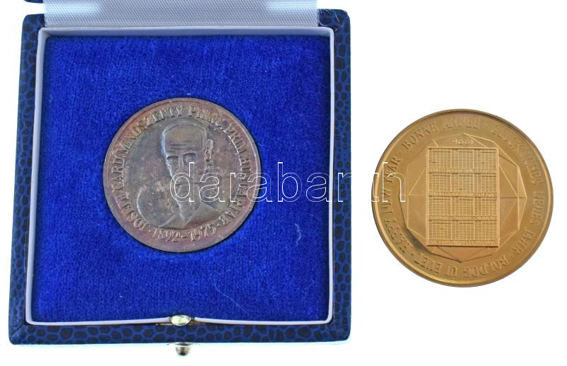 1991. "Mindszenty József Bíboros Hercegprímás 1892-1975 / Újratemetése Esztergomban" latin nyelvű, bronz emlékérem dísztokban (36mm) + Bognár György (1944-) 1996. "Metal Art Nemesfémipari Rt. / Boldog Új Évet 1996" aranyozott bronz naptárérem dísztokban (42,5mm) T:AU-PP fo.