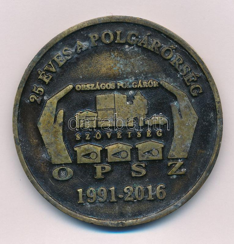 2016. "25 éves a Polgárőrség - Országos Polgárőr Szövetség - OPSZ 1991-2016" kétoldalas bronz emlékérem (59mm) T:AU,XF ph., patina