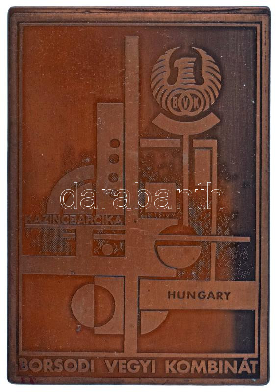 DN "BVK - Kazincbarcika - Hungary - Borsodi Vegyi Kombinát" egyoldalas, bronz plakett, előoldalán lakkozva (165x114mm) T:AU,XF hátoldalán kis patina