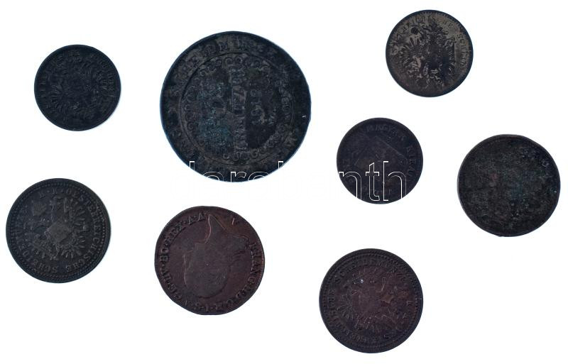 1800-1885. 8db-os Habsburg Cu érmetétel, közte 1878KB 1kr "Középcímer", 1851B 1kr, 1885. 1kr T:VF-VG