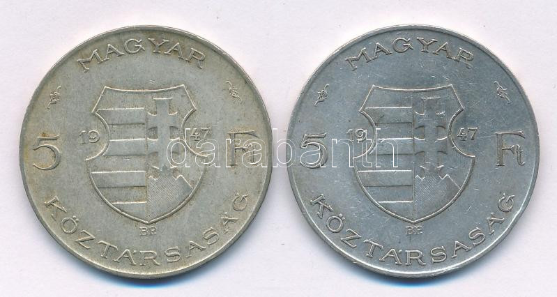 1947. 5Ft Ag "Kossuth" (2x) T:VF,F patina