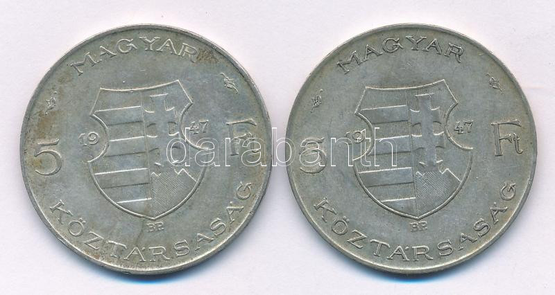 1947. 5Ft Ag "Kossuth" (2x) T:VF,F patina