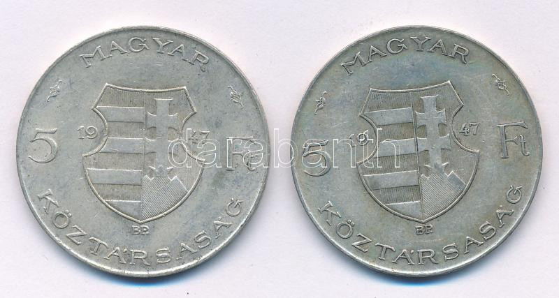 1947. 5Ft Ag "Kossuth" (2x) T:VF,F patina