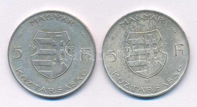 1947. 5Ft Ag "Kossuth" (2x) T:VF,F patina