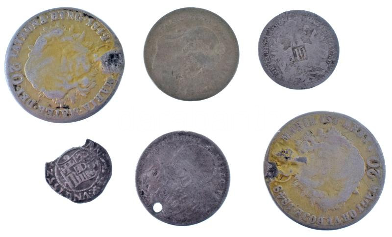 Vegyes, 6db-os érmetétel, közte: 1552K-B Denár Ag "I. Ferdinánd" + 1842B - 1848KB 20kr Ag "V. Ferdinánd" (2db) + 1868. 10kr + 1869. 20kr (2xklf) T:F-VG