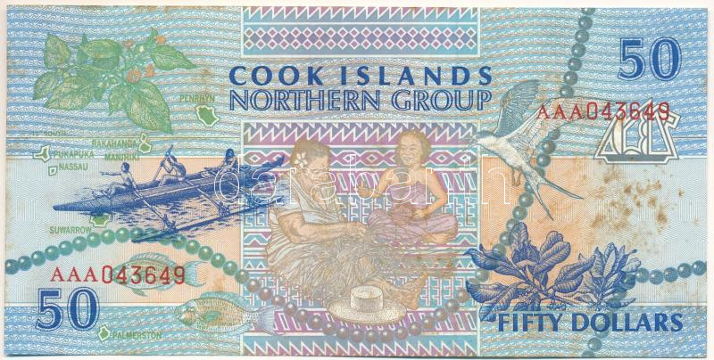 Cook Islands 1992. 50 Dollars C:XF unfolded, but spotted