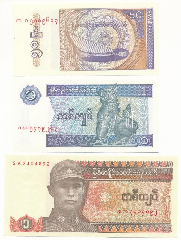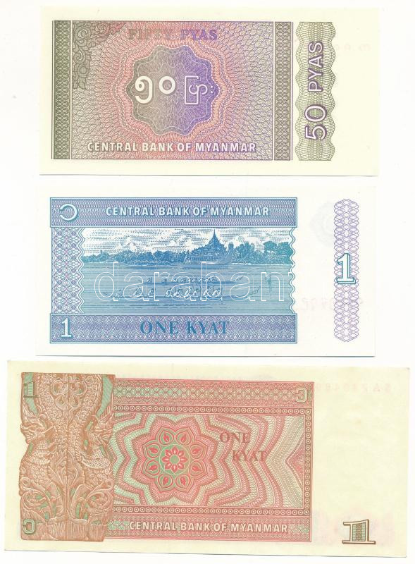 Myanmar 1990. 1 Kyat + 1994. 50 Pyas + 1996. 1 Kyat C:UNC-AU