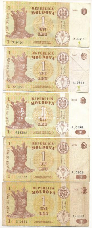 Moldova 1994-2015. 1 Leu (5pcs) C:F