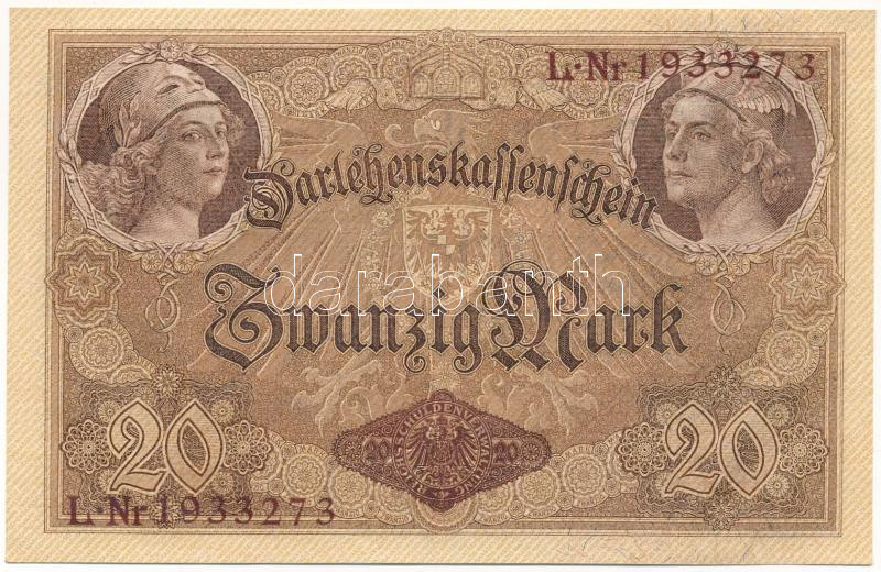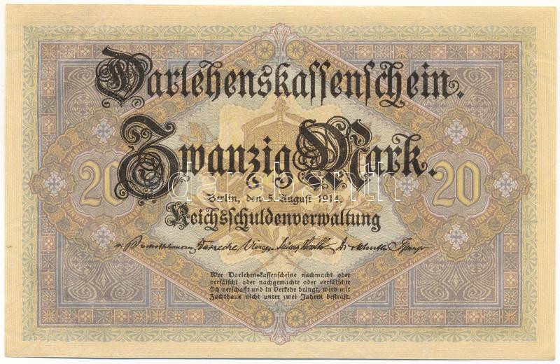 Német Birodalom 1914. 20M hétjegyű sorszámmal "1933273" T:XF