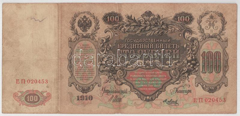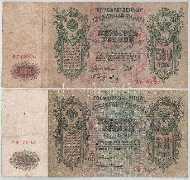 Orosz Birodalom 1910. 100R Szign.:Konshin + 1912. 500R Szign.:Shipov (2x) T:VG-G