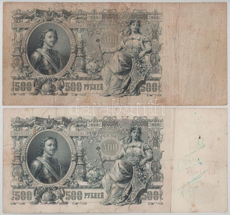 Russian Empire 1910. 100 Roubles Sign.:Konshin + 1912. 500 Roubles Sign.:Shipov (2x) C:VG-G