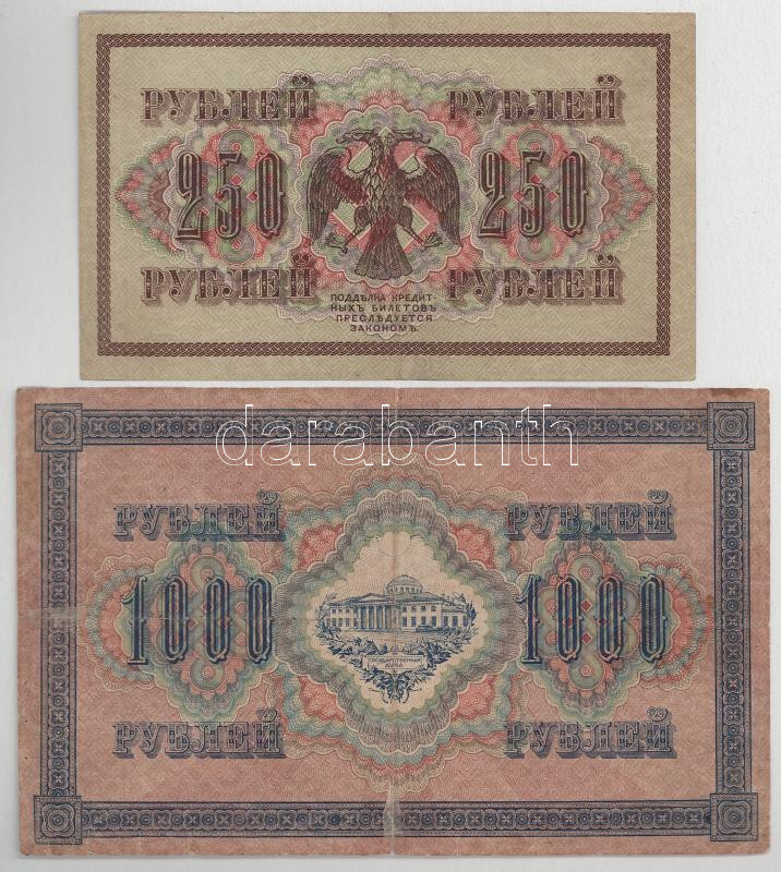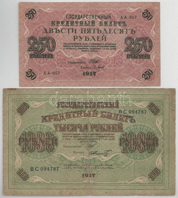 Orosz Birodalom 1917. 250R + 1000R Szign.:Shipov T:F-VG szakadások