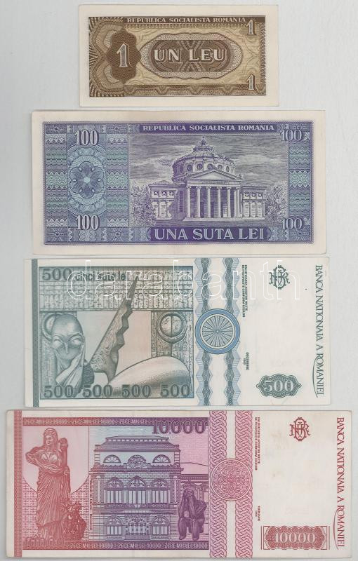 Romania 1966. 1 Leu + 100 Lei + 1992. 500 Lei + 1994. 10.000 Lei C:AU-F