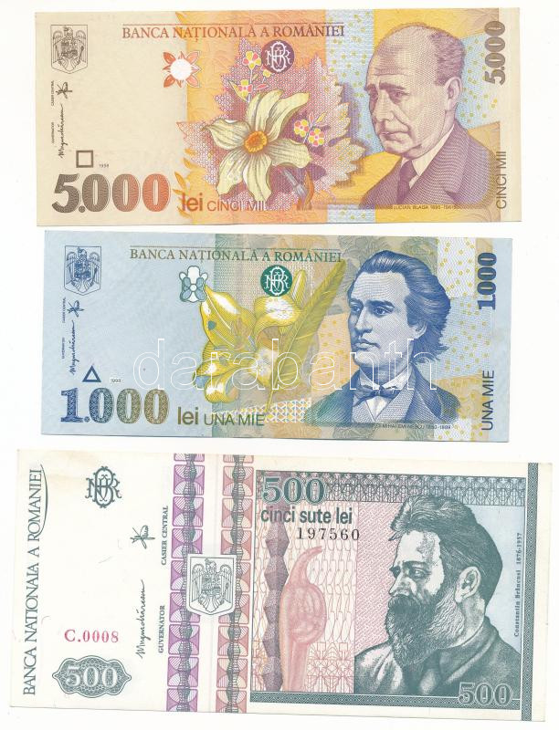 Romania 1992. 500 Lei + 1998. 1000 Lei + 5000 Lei C:AU,XF