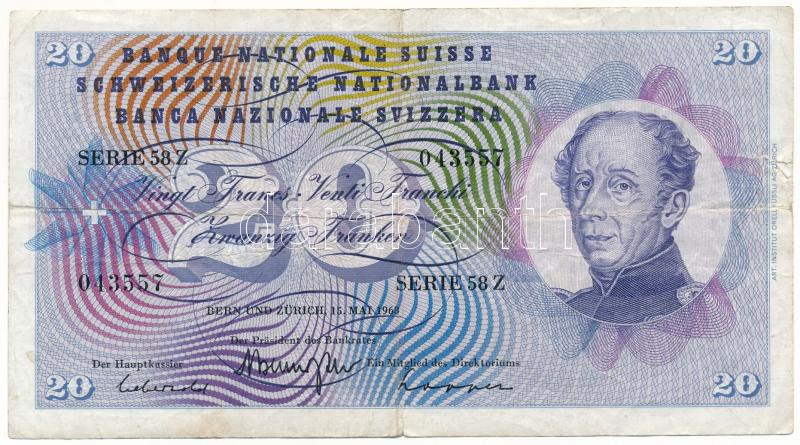 Svájc 1968. 20Fr "58Z 043557" T:F kis szakadás