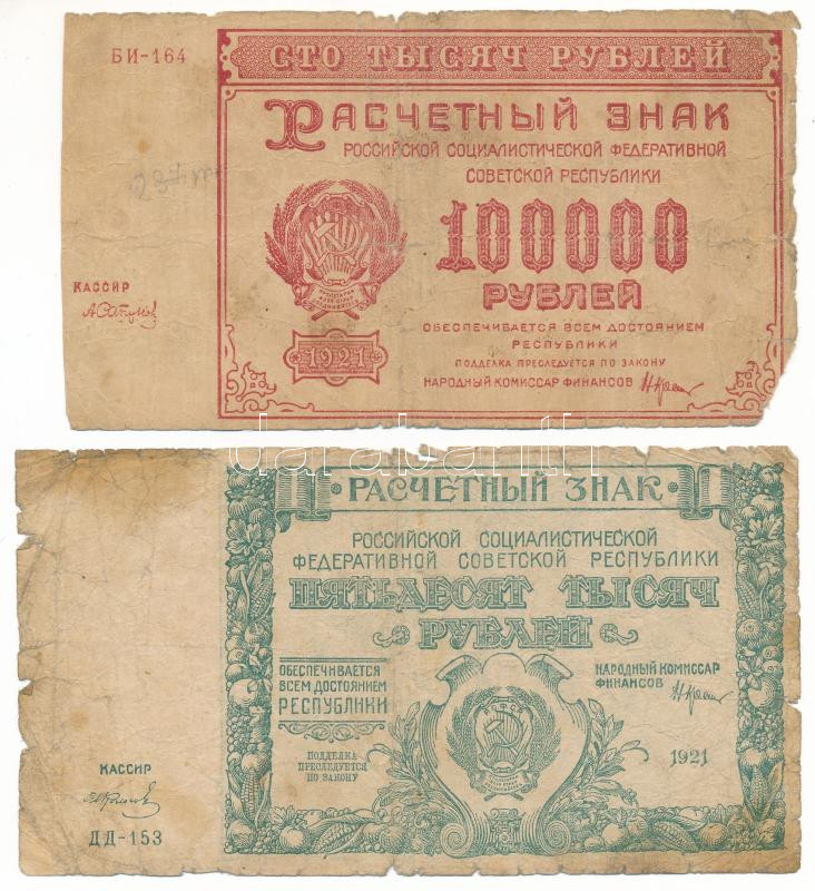 Soviet Union / Russian Socialist Federated Soviet Republic 1921. 50.000 Roubles + 100.000 Roubles C:G