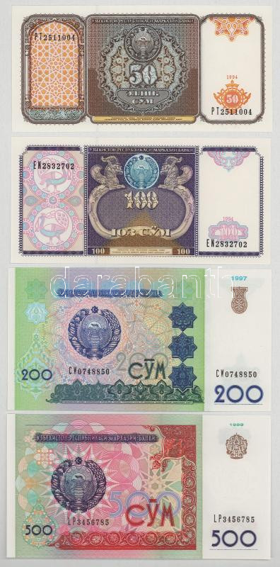 Üzbegisztán 1994. 50S + 100S + 1997. 200S + 1999. 500S T:UNC-AU