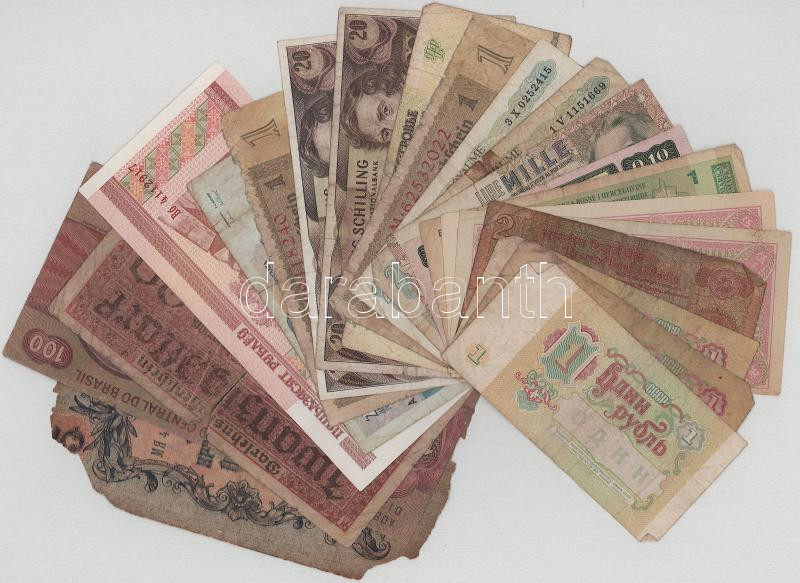 Vegyes 21db-os külföldi bankjegytétel, benne: Bosznia-Hercegovina, Németország, Ausztria, Kína, Szovjetunió, Transznisztria, Oroszország, Fehéroroszország, Bulgária, Olaszország, Lengyelország, Belgium, Brazília T:vegyes