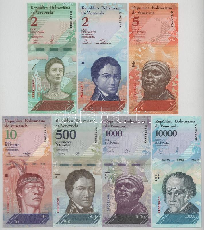Venezuela 2012-2018. 2 Bolívares - 10.000 Bolívares (7xdiff) C:UNC-AU wavy paper