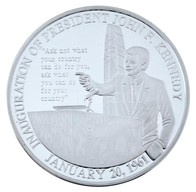 2007. "John Fitzgerald Kennedy 1917-1963 - Life and Legacy / Inauguration of President John F. Kennedy - January 20. 1961" kétoldalas, ezüstözött Cu emlékérem, kapszulában, dísztokban, sorszámozott tanúsítvánnyal (40mm) T:PP patina