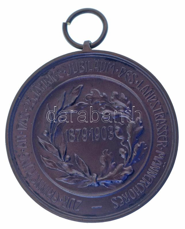 Ausztria 1903. A Landstraße Férfikórus megalakulásának 25. évfordulója alkalmából kiadott kétoldalas bronz emlékérem füllel, függesztőkarikával. "Franz Porsch Nied. Öst. Bundesrath Ehrenchormeister des Vereines / Zur Erinnerung an das 25 Jährige Jubiläum des Landstrasser Männerchores - 1879-1903" (51mm) T:AU patina