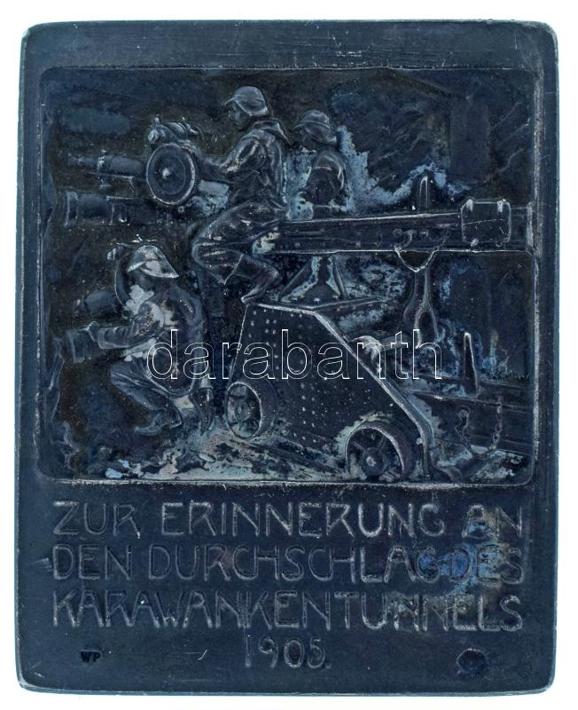 Austria 1905. "In memory of the breakthrough of the Karawanken railway tunnel floor" double-sided, marked Ag commemorative plaque, with "WP" maker's mark. Sign: Arnold Hartig. "Zur erinnerung an den Durchschlag des Karawankentunnels 1905" (22,95g/0.900/32x40mm). The Karawanken Tunnel (Karawankentunnels) was built between 1901 and 1906. This commemorative plaque commemorates the breakthrough of the tunnel floor, which took place in 1905. The Karawanken is located on the Rosentalbahn railway line and runs under the mountain range of the same name. Today it is considered an international railway tunnel, as it connects Austria and Slovenia, and dozens of trains pass through it every day. C:AU patina, small edge error