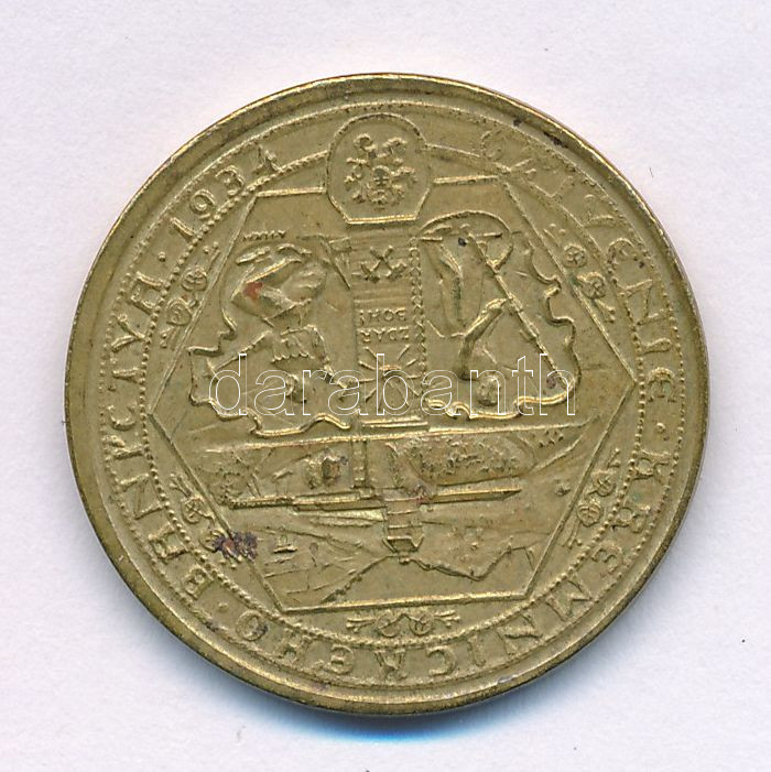 Csehszlovákia 1934. "A körmöcbányai bányászat újjáélesztése 1934" kétoldalas bronz emlékérem (25mm) T:XF