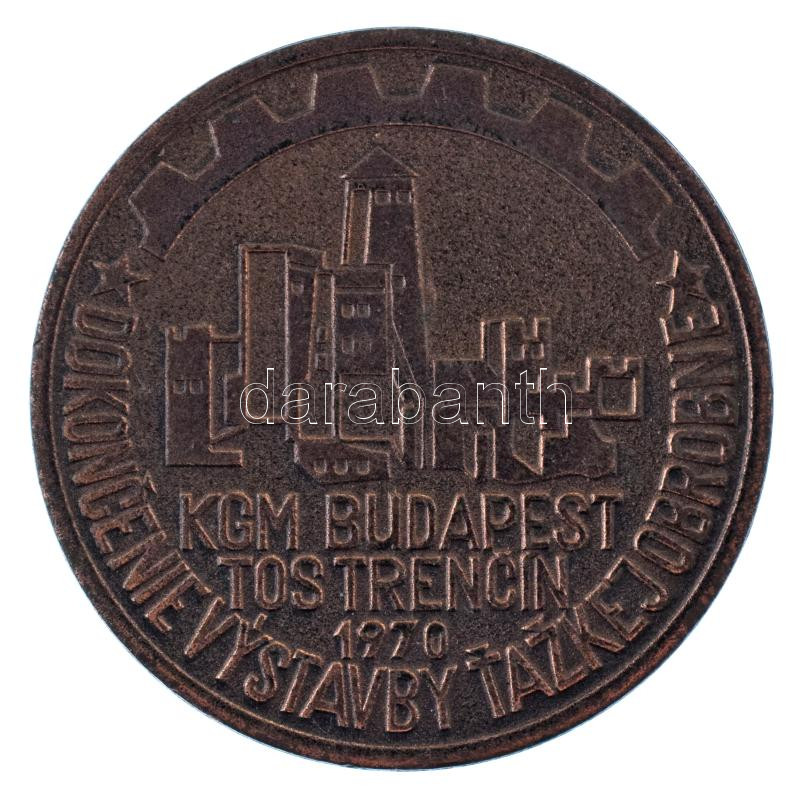 Csehzlovákia 1970. "KGM Budapest - TOS Trencsén - Dokončenie výstavby ťažkejobrobne (KGM Budapest - TOS Trenčín - Nehézgépgyár építésének befejezése)" egyoldalas öntött bronz emlékérem (50mm) T:VF