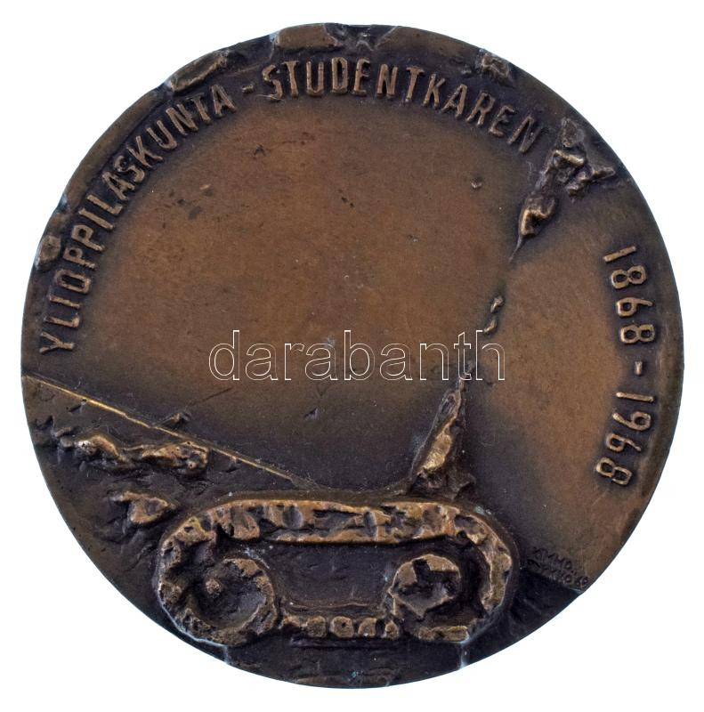 Finnország 1968. "Diákszövetség 1868-1968" kétoldalas bronz emlékérem finn és svéd nyelven. Szign.: Kimmo Pyykkö (79mm) T:AU