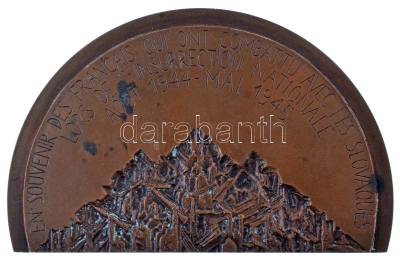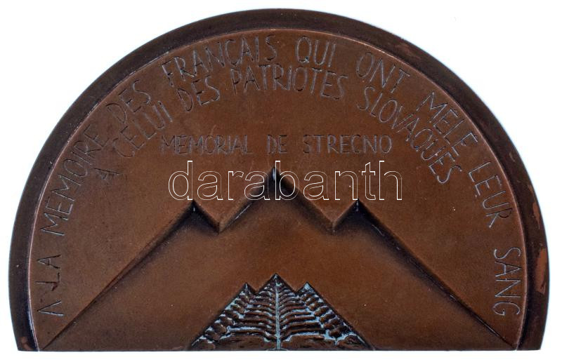 Franciaország 1982. "Á la Memoire des Francais qui ont mélé leur Sang a celui des Patriotes Slovaques - Memorial de Strecno / En Souvenir des Francais qui ont combattu aves les Slovaques lors de l'Insurrection Nationale - Aout 1944 - Mai 1945" bronz emlékplakett, peremén jelzett (57x87mm) T:AU,XF patina