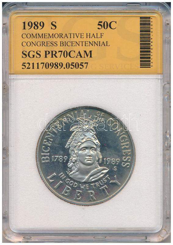 Amerikai Egyesült Államok 1989S 1/2$ Cu-Ni "Kongresszus" bontatlan SGS műanyag tokban, tanúsítvánnyal T:PP kis patina