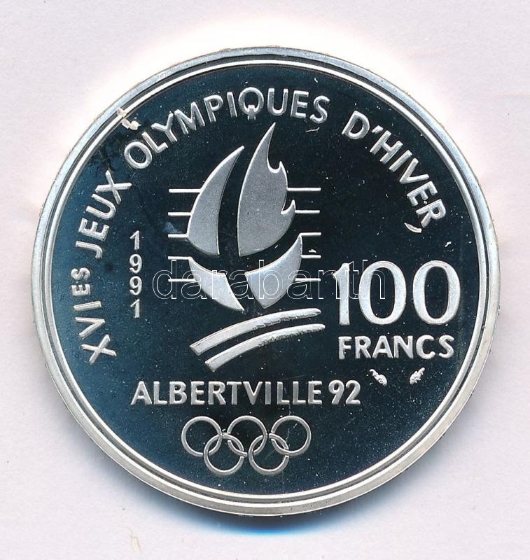 Franciaország 1991. 100Fr Ag "XVI. Téli Olimpia - Albertville 1992 - Jégkorong" kapszulában T:PP