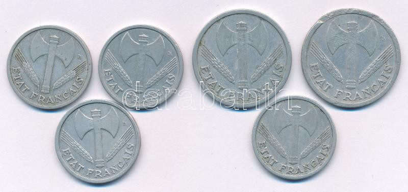 Franciaország / Vichy-kormány 1942-1943. 1Fr Al (4db) + 1943. 2Fr Al (2x) T:XF,VF
