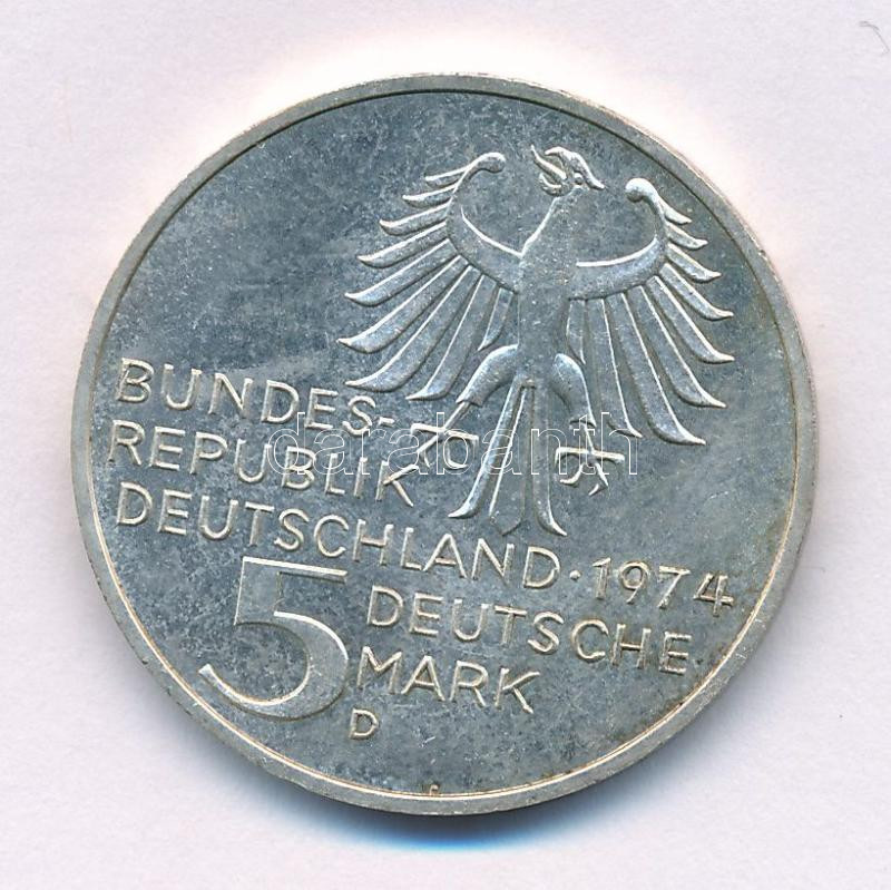Német Szövetségi Köztársaság 1974D 5M Ag "Immanuel Kant" T:AU patina