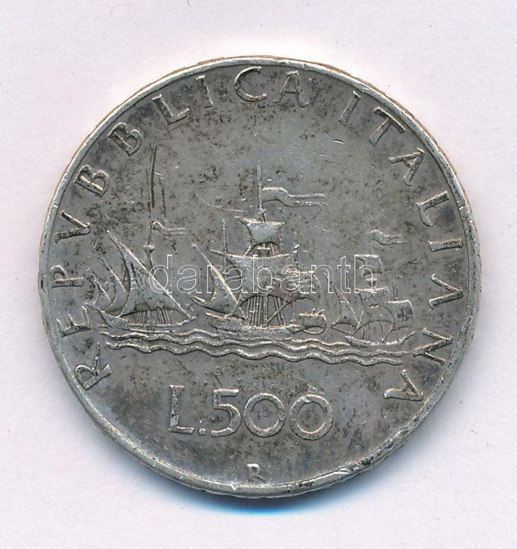 Olaszország 1958R 500L Ag "Kolumbusz hajói" T:VF patina
