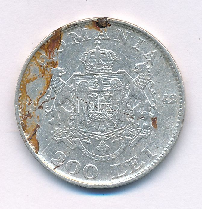 Románia 1942. 200L Ag "I. Mihály" T:XF szennyeződés