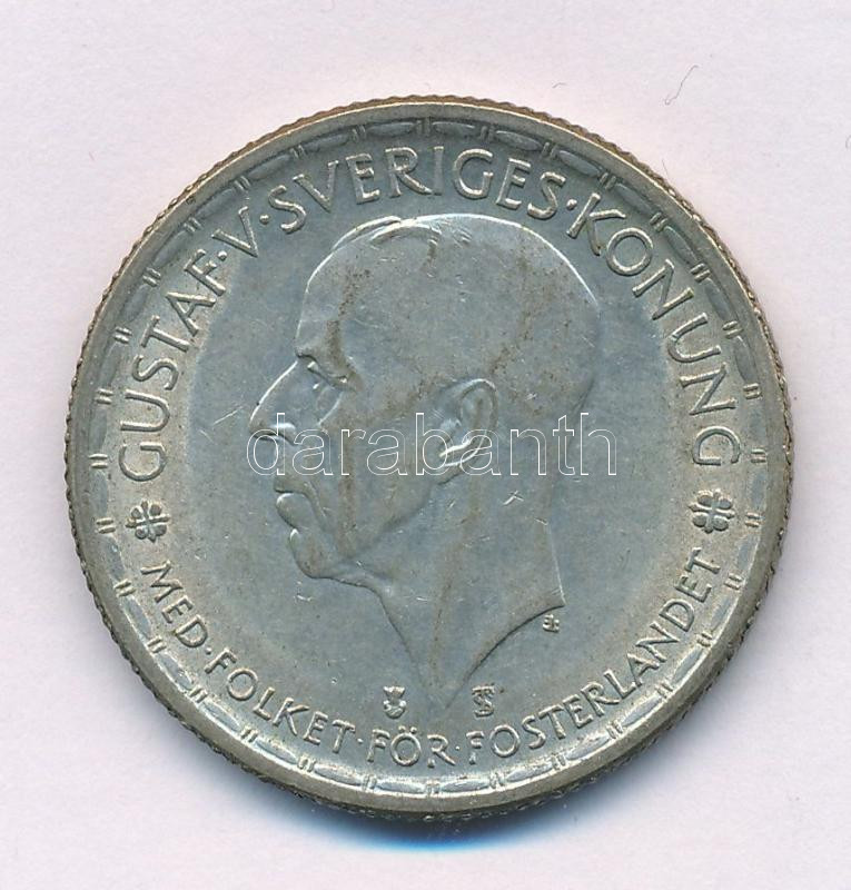 Svédország 1945G/TS 2Kr billon "V. Gusztáv" G verdejel átütve TS-re T:XF patina