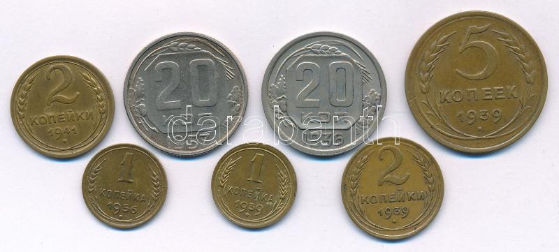 Soviet Union 1936-1957. 1 Kopeck - 20 Kopecks (7xdiff) C:AU,XF